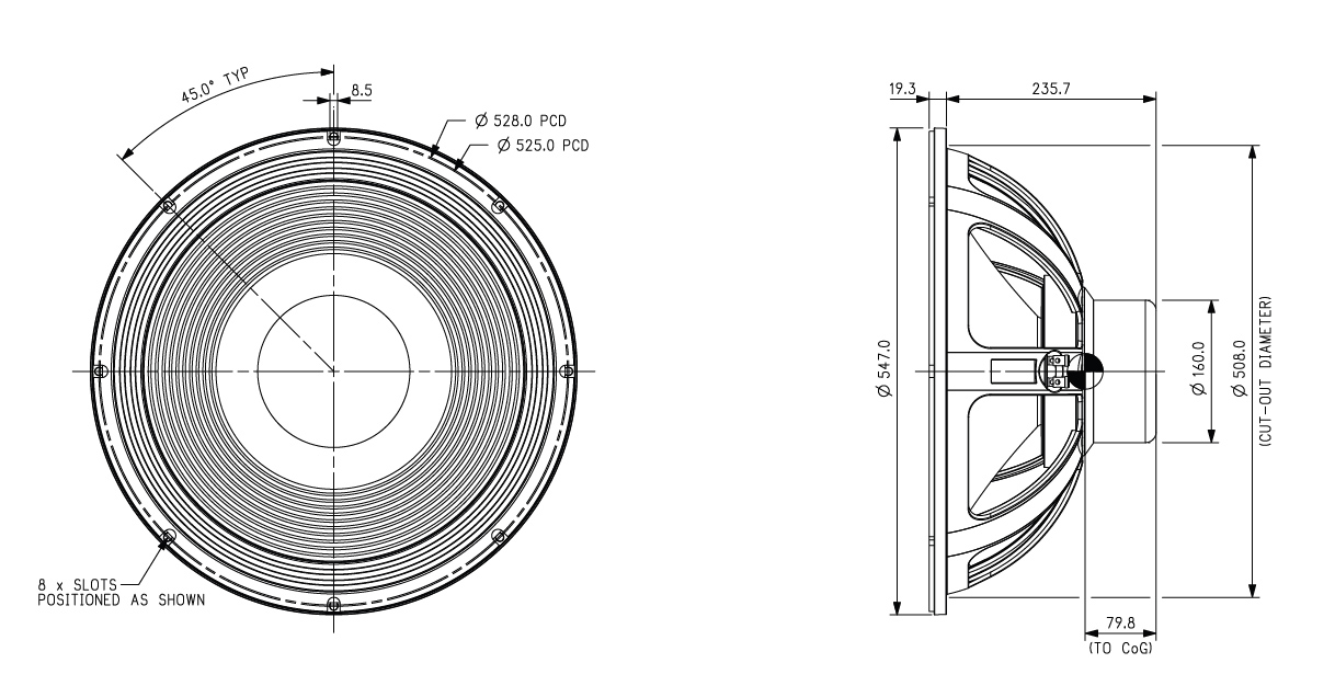Power rating: Tested for two hours using a continuous, band-limited pink noise signal as per AES standard. Power calculated on minimum impedance. Loudspeaker tested in free air.