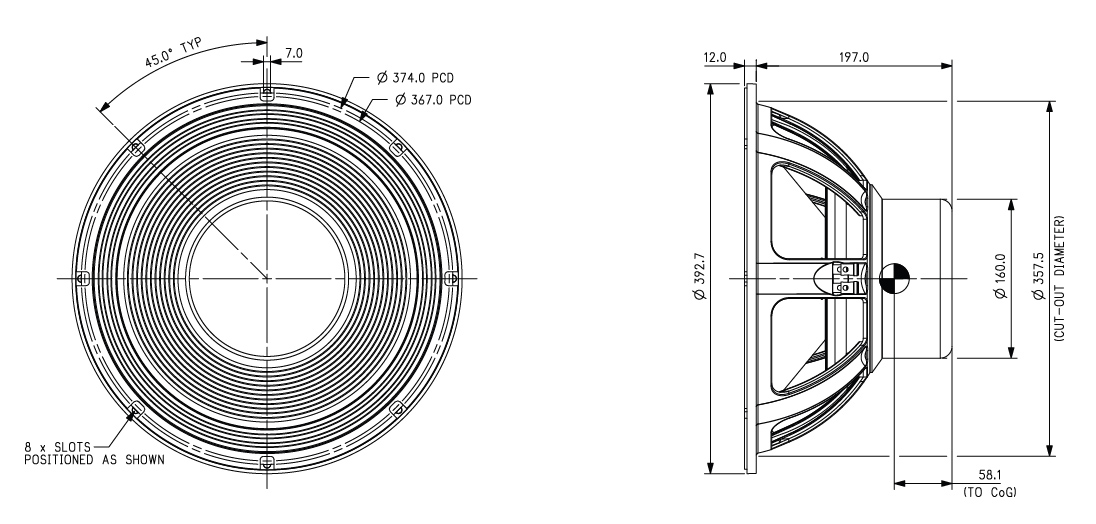 - Polysiloxane laminated triple suspension provides much greater stability and improved cone displacement symmetry