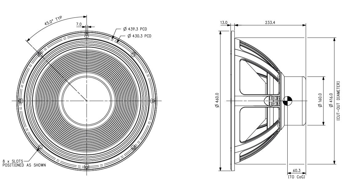 460mm / 18.1in